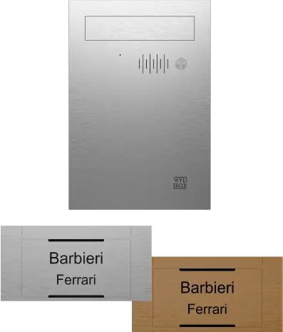 Le cassette postali con citofono integrato sono contraddistinte da una scocca in acciaio inox dal design minimal e lineare, con la possibilità di scegliere tra la finitura in inox satinato o bronzo satinato. Loghi, nomi e civici possono essere intarsiati, incisi o in contrasto grigio opaco, per una massima personalizzazione che rende ancora più unico il prodotto.